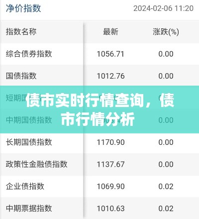债市实时行情概述债市实时行情查询是指投资者通过金融服务平台或者专业软件,实时获取债券市场的最新价格、收益率、成交量等信息。在债券市场中,实时行情对于投资者来说至关重要,因为它可以帮助投资者及时了解市场动态,做出更为...