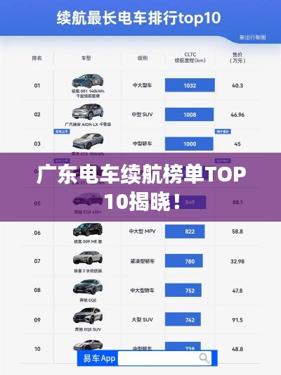 随着环保理念的普及和科技的不断发展,电动汽车越来越受到人们的青睐,在广东地区,电车市场尤为活跃,各种品牌和型号的电动汽车层出不穷,对于消费者来说,选择一款续航能力强、性能稳定的电车至关重要,本文将为大家介绍广东地区电车续航排名前十名的车型,以帮助大家更好地了解市场,做出明智的选择。