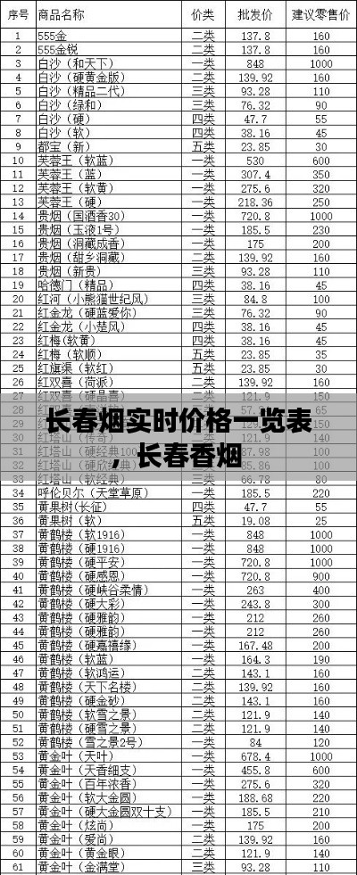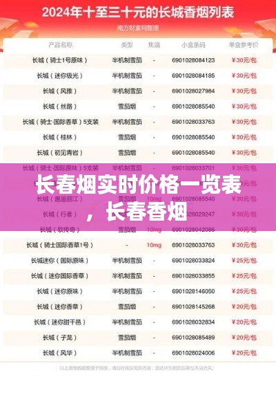 以下是一份长春烟的实时价格一览表,数据来源于各大电商平台和实体店铺,仅供参考: