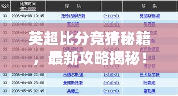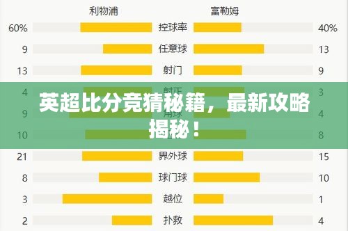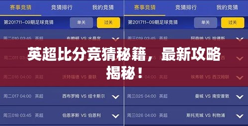 随着足球运动的普及和英超联赛的热度不断升温,越来越多的人开始关注英超赛事,其中不乏众多热爱竞猜的朋友们,本文将为大家带来一篇最新的英超比分竞猜攻略,帮助大家提高竞猜成功率,更好地享受足球比赛的乐趣。