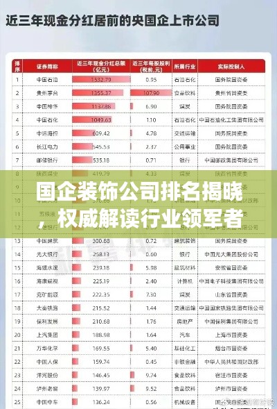 随着社会的快速发展,装饰行业日新月异,国企装饰公司在其中扮演着重要的角色,这些公司以其深厚的实力、精湛的技术和卓越的服务,赢得了广大客户的信赖和好评,本文将为您详细介绍装饰公司国企排名,带您了解行业内的领军者。