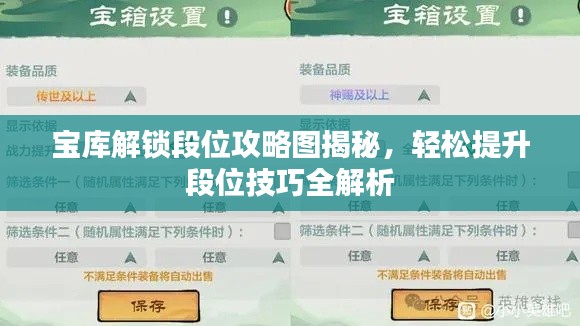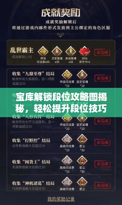 随着游戏版本的不断更新,如何解锁宝库段位成为众多玩家关注的焦点,本文将为大家带来一篇关于“宝库解锁段位最新攻略图”的详解,帮助大家轻松掌握解锁宝库段位的方法和技巧。
