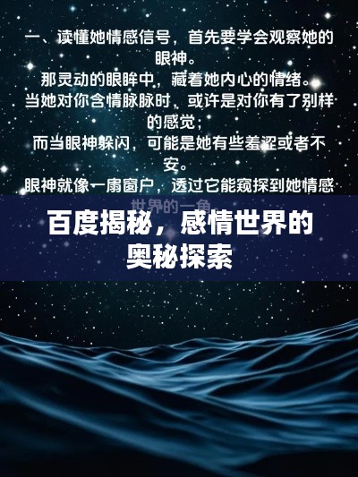 当我们打开百度搜索,输入“感情”,你会发现这是一个充满故事的世界,有人在这里寻找失去的爱情,有人在这里分享甜蜜的瞬间,还有人在这里寻求感情的解答,每个人都在用自己的方式诠释着感情的真谛。