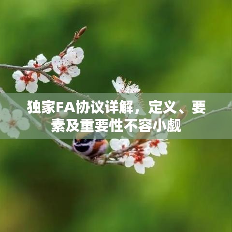 在现代商业环境中,随着全球化的加速和市场竞争的日益激烈,企业之间的合作模式日趋复杂多样。“FA协议独家”作为一个特定的合作形式,逐渐受到广泛关注,本文将详细介绍独家的FA协议是什么、其包含的关键要素以及它在商业领域的重要性。