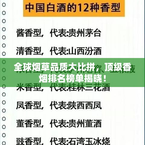 烟草业一直是全球重要的产业之一,香烟的品质与口感因地域、文化和品牌等因素而异,本文将为您揭示全球香烟质量排名,带您领略世界各地的烟草魅力。
