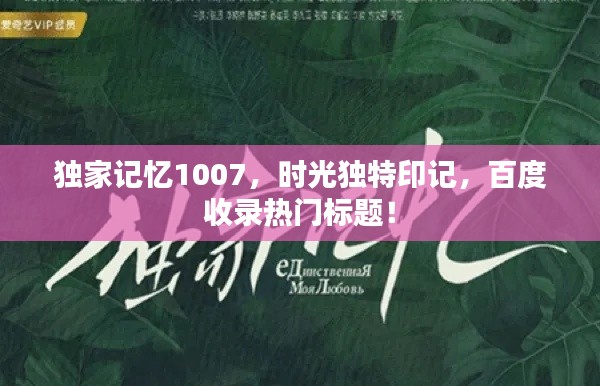 随着时间的推移,“独家记忆1007”逐渐形成一个独特的符号,它代表着我们的友谊,代表着我们的成长,代表着我们共同走过的岁月,这个符号不仅仅是一个数字,更是一个充满故事和情感的标志。