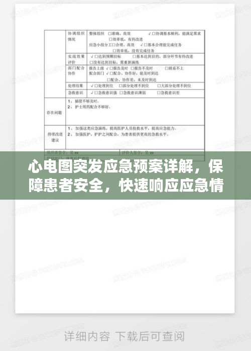 心电图突发状况是医疗领域中常见且需要紧急处理的情况之一,为了保障患者的生命安全及医疗质量,制定一份详细的心电图突发应急预案显得尤为重要,本文旨在提供一份规范的心电图突发应急预案范文,以便医疗机构及相关人员参考与借鉴。