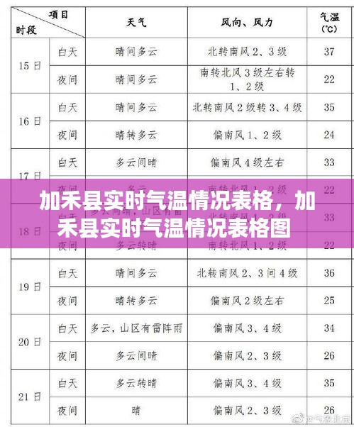 加禾县位于我国某省,是一个四季分明、气候宜人的地区。为了方便大家及时了解加禾县的气温变化,我们特别制作了以下实时气温情况表格。该表格将每日的气温数据以详细的时间段进行展示,帮助您更好地规划日常生活和出行。