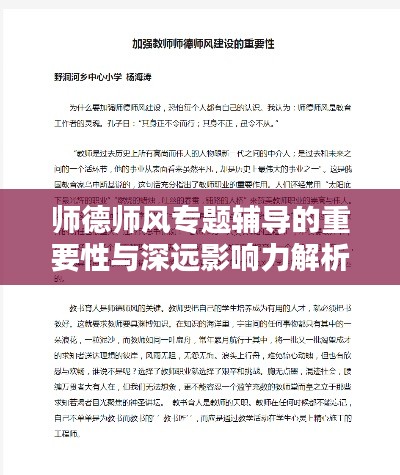 在当今教育领域中,教师的角色已经远超越了单纯的知识传授者,师德师风,作为教育工作的灵魂,对于学生的学习成长以及人格塑造具有深远的影响,开展师德师风专题辅导显得尤为重要,本文将深入探讨师德师风专题辅导的重要性、内容以及其深远影响。