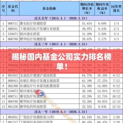 随着国内金融市场的不断发展和壮大,基金行业也日新月异,基金公司如雨后春笋般涌现,在众多的基金公司中,哪些公司的实力较强,排名靠前呢?本文将为您揭示国内基金公司实力排名,以帮助投资者更好地了解行业格局,为投资决策提供参考。
