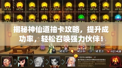 本文为你带来最新的神仙道抽卡攻略,包括了解抽卡机制、最新抽卡攻略以及提高抽卡成功率的建议,希望这些攻略能够帮助你在神仙道游戏中轻松获取心仪的角色和道具,提醒大家保持良好心态,理性游戏,享受神仙道的奇幻世界。