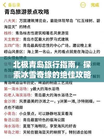 青岛,这座美丽的海滨城市,以其独特的魅力吸引着无数游客,而北极青岛之旅更是让人充满期待,本文将为你提供一份详尽的北极青岛旅游攻略,帮助你更好地了解这座城市,充分感受北极青岛的魅力。