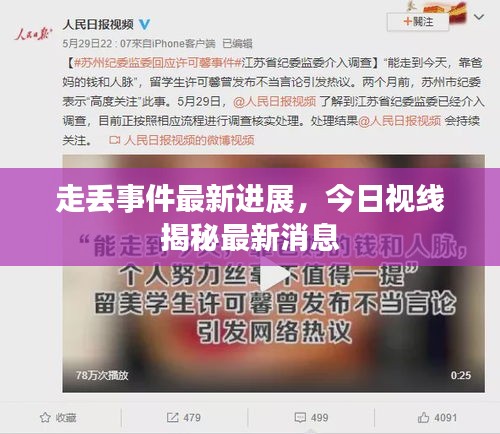 今日视线聚焦于走丢事件的最新消息,我们要关注搜救工作的进展,为走丢者祈祷和祝福,我们也要关注身边的安全问题,加强安全防范意识,让我们共同努力,为社会的和谐稳定贡献自己的力量。