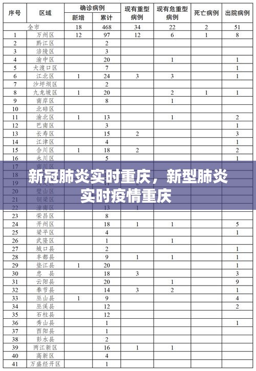 自2020年新冠肺炎疫情爆发以来,重庆市作为我国重要的直辖市之一,一直密切关注疫情动态,并采取了一系列严格的防控措施。根据最新数据,重庆市累计报告确诊病例数已超过数百例,但通过全市上下的共同努力,疫情得到了有效控制。以下是重庆市新冠肺炎的实时情况概述。