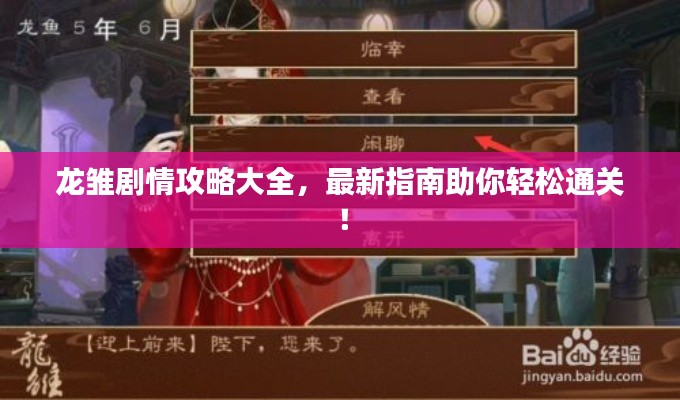 《龙雏》作为一款热门的角色扮演游戏,其丰富的剧情和独特的游戏玩法吸引了大量玩家,本攻略旨在帮助玩家更好地理解游戏剧情,解锁更多游戏内容,让游戏体验更加顺畅,以下是最新的龙雏剧情攻略,希望对广大玩家有所帮助。
