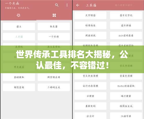 在全球化的今天,各种工具层出不穷,但有些工具因其卓越的性能和广泛的影响力,成为世界公认的传承工具,这些工具不仅在日常生活中发挥着重要作用,而且在各个领域中都得到了广泛的应用和认可,本文将介绍世界公认传承工具的排名,探讨它们的特点和优势。