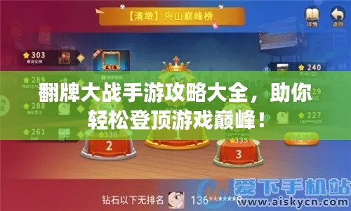 翻牌大战手游以其独特的玩法和丰富的游戏内容吸引了众多玩家,游戏以翻牌为主要玩法,玩家需要通过不断翻牌获取资源、道具和奖励,同时与其他玩家进行竞技对抗,本攻略将为你提供最新的游戏攻略,助你轻松掌握游戏技巧,提升游戏水平。