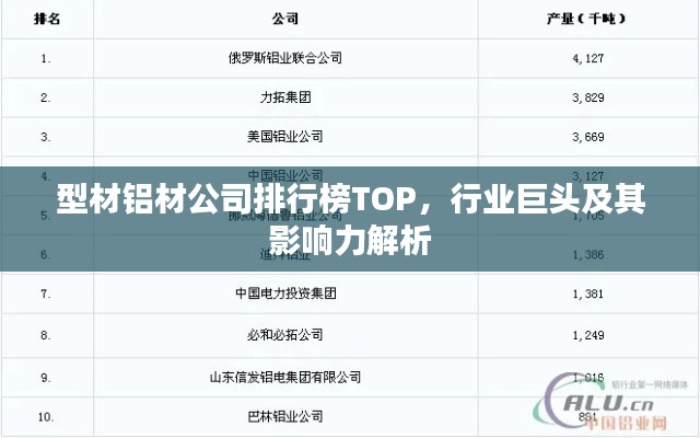 随着现代工业的发展,铝材行业逐渐崭露头角,成为支撑制造业的重要支柱之一,型材铝材作为铝材行业的一个重要分支,其市场需求日益增长,本文将探讨型材铝材公司的排名,介绍行业内的一些佼佼者及其影响力,以期对读者了解该行业有所帮助。