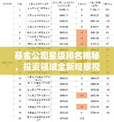 随着金融市场的竞争日益激烈,基金公司的业绩和表现成为投资者关注的重点,为了更好地了解基金公司的实力和业绩,投资者需要一种简单明了、易于操作的排名方式,基金公司星级排名应运而生,成为投资者选择基金公司的一种重要参考依据。