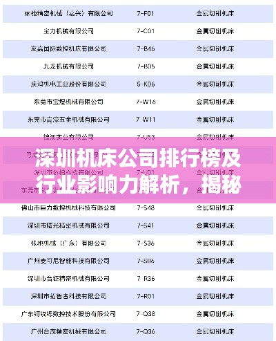 随着制造业的飞速发展,机床行业在中国经济中扮演着举足轻重的角色,深圳,作为中国的经济特区,其机床行业更是蓬勃发展,涌现出了一批优秀的机床公司,本文将探讨深圳机床公司的排名及其行业影响力。