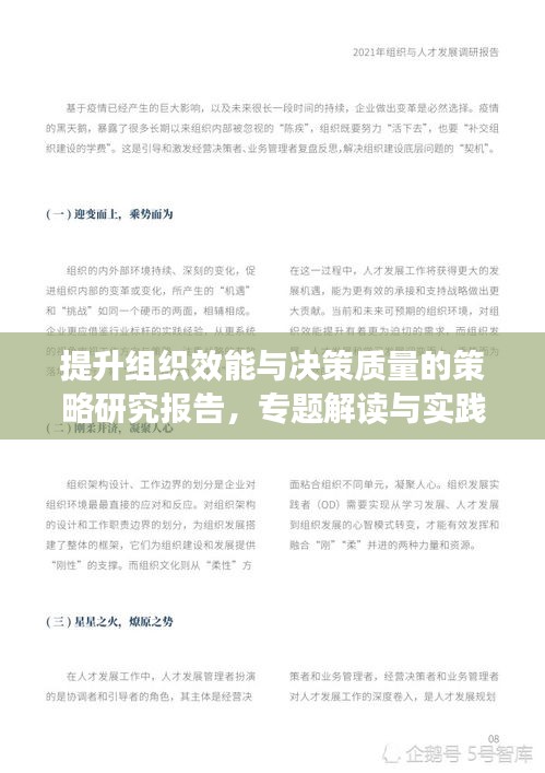 在当前竞争激烈的市场环境下,企业、团队或政府机构需要不断提高自身的组织效能与决策质量,以应对各种挑战和机遇,为此,本专题报告旨在提出一系列建议,以推动组织在战略规划、执行力、团队协作及创新等方面实现显著改进。