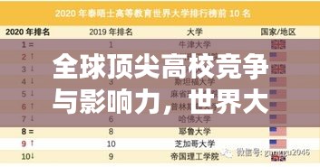 世界高校排名的影响力不容忽视,对于学生们来说,排名是他们选择大学的重要参考依据,学生们更倾向于选择排名靠前的高校,因为这些学校通常拥有更好的教育资源、更高的教育质量、更好的就业前景,世界高校排名也影响了国际合作与交流,排名靠前的高校更容易吸引国际学生和国际科研合作,从而推动全球教育和科研的发展,世界高校排名也影响了各国的教育政策,许多国家根据高校排名来调整教育政策,以更好地提升本国教育的质量和竞争力。