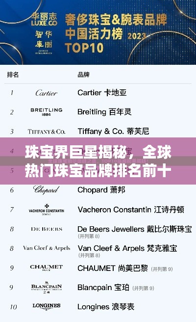 珠宝,作为时尚与奢华的象征,一直受到人们的喜爱和追捧,在市场上,众多珠宝品牌竞争激烈,各有其独特的魅力和特色,本文将为大家介绍珠宝行业中的大牌热门珠宝排名前十名,以供参考。