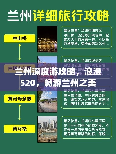 兰州,这座历史悠久的城市,既有丰富的文化遗产,又有现代都市的繁华,在这个特殊的520日子,来一场深度游兰州,让爱情在西北的壮丽景色中升华,希望这篇旅游攻略能为你提供帮助,祝你在兰州度过一个愉快的旅程!
