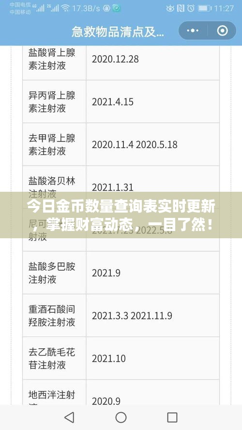 掌握最新的金币数量查询表,对于投资者来说是非常重要的,通过官方平台、第三方平台和查询表,你可以轻松了解自己的金币数量,并把握市场动态,也需要注意保护个人隐私和账户安全,防范风险,希望本文能为你提供有用的信息,助你更好地管理你的虚拟资产。