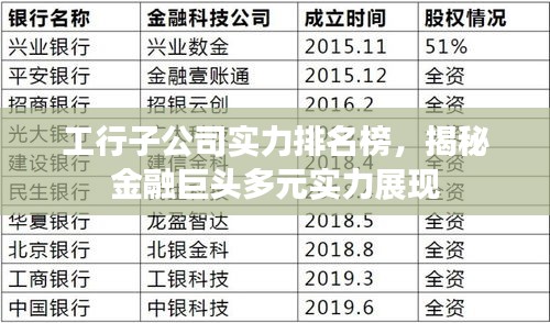 随着金融市场的不断发展和深化,银行业竞争日趋激烈,作为国有大型商业银行的工商银行,其子公司布局广泛,业务多元,实力强大,本文根据最新数据,揭示工行子公司的排名榜,带您了解金融巨头的多元实力。