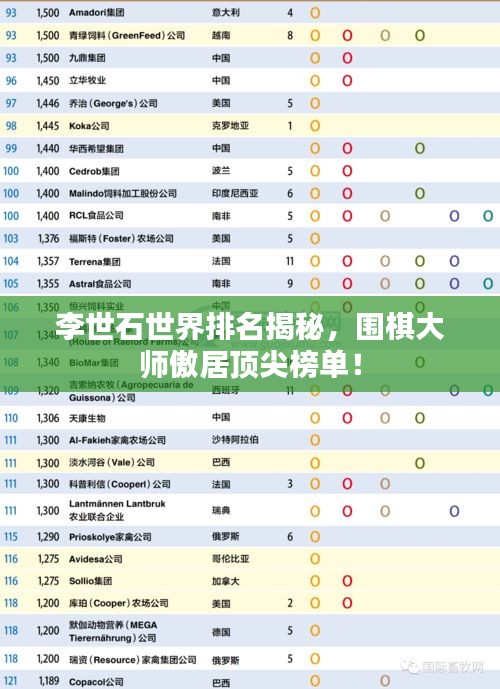 在世界围棋界,李世石是一位备受瞩目的棋手,他的棋艺高超,风格独特,深受众多棋迷喜爱,李世石在世界排名中的位置又是怎样的呢?