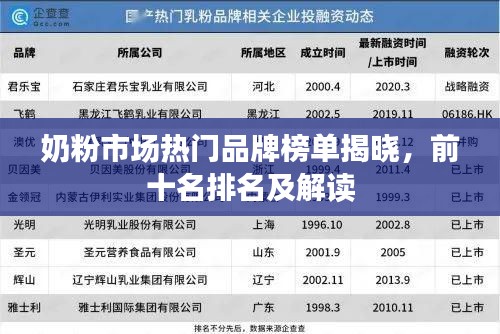 随着人们对健康和营养的日益关注,奶粉作为重要的营养食品之一,其品质和安全越来越受到消费者的重视,在市场上,各种品牌的奶粉琳琅满目,让消费者难以选择,本文将介绍奶粉排名前十名的品牌,帮助消费者了解市场热门奶粉品牌的特点和优势。
