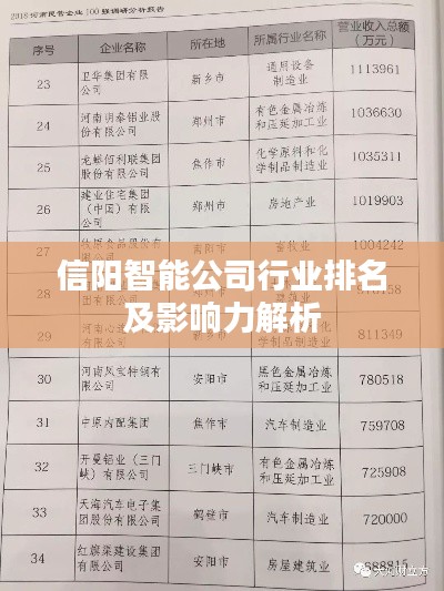 随着科技的飞速发展,智能化成为各行各业转型升级的关键,在这样的时代背景下,信阳的智能公司也应运而生,蓬勃发展,本文将深入探讨信阳智能公司的排名及其行业影响力。