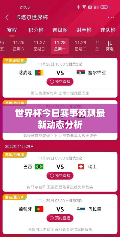 随着世界杯的日益临近,全球球迷的热情持续高涨,各大媒体、专家和球迷们都在争相预测今年的赛事走向,本文将结合最新消息,为您带来今日的世界杯预测。