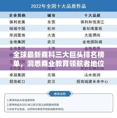 随着全球经济的不断发展和商业教育的普及,商科专业在全球范围内越来越受到重视,商科三大巨头,即哈佛大学商学院、斯坦福大学商学院和沃顿商学院,一直是全球商业教育的领军者,本文将为您揭示商科三大巨头最新排名榜单及其在全球商业教育领域的独特地位。