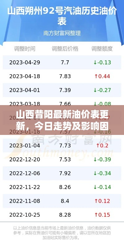 随着全球经济的不断发展和国内市场的日益繁荣,油价问题一直备受关注,关于“山西昔阳今日油价表最新”的信息引起了广泛关注,本文将围绕这一主题,介绍山西昔阳的最新油价情况,分析油价走势及其影响因素。