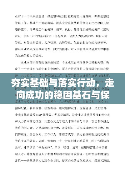 “夯实”与“落实”是我们通往成功的基石与保障,只有夯实基础,才能真正做到有效落实,而在落实的过程中,我们也能进一步夯实基础,让我们在实际工作中,做到既夯实又落实,为我们的成功之路打下坚实的基础。