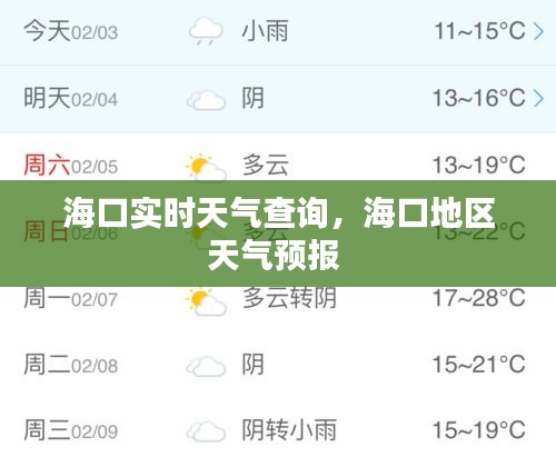 海口,这座位于中国海南省的海滨城市,以其美丽的海滩和温暖的气候而闻名。对于计划出行或生活在海口的人来说,了解最新的天气情况至关重要。本文将为您介绍如何通过实时天气查询服务来获取海口最新的天气信息。