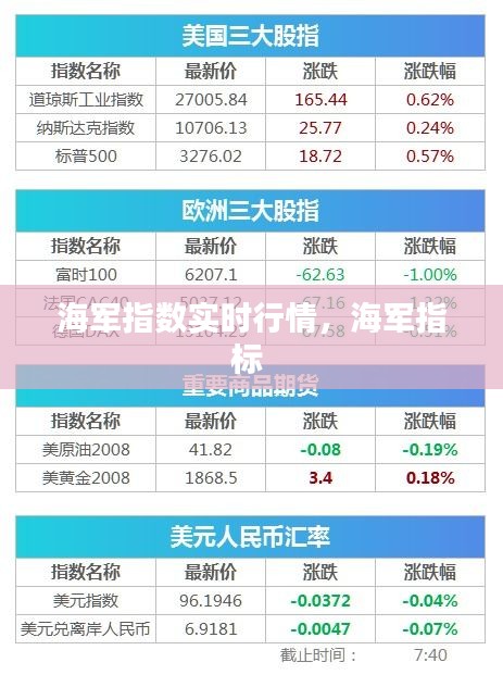 海军指数,全称为海军综合实力指数,是一种用于衡量一个国家海军综合实力的指标。该指数综合考虑了海军的舰艇数量、舰艇类型、装备水平、人员素质、后勤保障等多个方面。实时行情则是指这一指数在特定时间点的最新数据表现。了解海军指数的实时行情,对于分析国际海军力量对比、预测未来海军发展趋势具有重要意义。