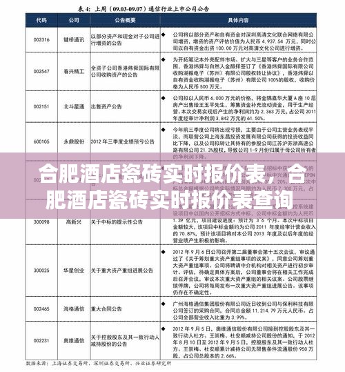 随着经济的发展和旅游业的热度攀升,合肥酒店行业呈现出蓬勃发展的态势。为了满足酒店装修的需求,瓷砖作为地面和墙面装饰的重要材料,其质量和价格成为了酒店业主关注的焦点。本文将为您呈现合肥酒店瓷砖的实时报价表,帮助您了解当前市场行情。