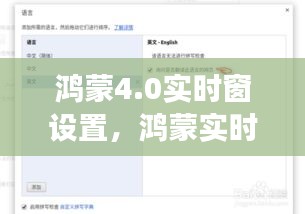 鸿蒙操作系统(HarmonyOS)是华为自主研发的操作系统,旨在为多种设备提供统一的软件平台。自2019年发布以来,鸿蒙系统已经经历了多个版本的迭代,不断优化和完善。鸿蒙4.0作为最新的版本,带来了许多新特性和改进,其中实时窗设置功能尤为引人注目。