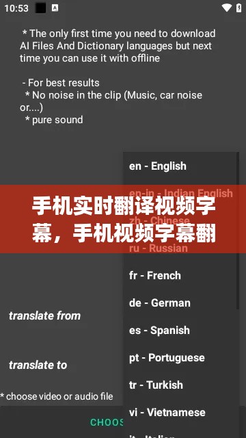 手机实时翻译视频字幕是一种利用现代人工智能技术,将视频中的语音实时翻译成字幕并显示在屏幕上的应用。这种应用通常具备以下功能: