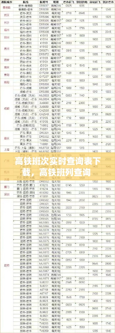 高铁班次实时查询表下载为旅客提供了极大的便利,让您轻松掌握高铁出行信息。希望本文能帮助您顺利下载并使用高铁班次实时查询表,祝您旅途愉快!