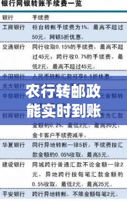 农业银行(农行)和邮政储蓄银行是中国两大重要的金融机构,它们在金融服务领域各有特色。近年来,随着金融科技的快速发展,跨行转账业务越来越受到用户的关注。农行转邮政储蓄银行,即用户从农行账户向邮政储蓄银行账户进行转账,已经成为一种常见的金融操作。那么,这种转账方式能否实现实时到账呢?本文将对此进行详细探讨。