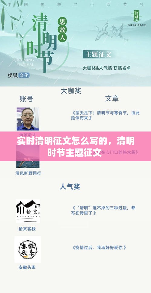 实时清明征文是指在清明节期间,针对清明节这一特定节日主题进行的征文活动。要想写好一篇实时清明征文,首先需要了解征文的基本要求。通常,这些要求包括征文的主题、字数限制、文体风格以及提交截止日期等。了解这些基本要求有助于我们更好地组织文章结构和内容。