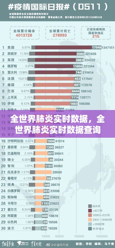 以下是一些全球肺炎疫情实时数据的展示方式: