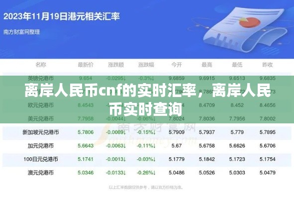 总之,离岸人民币CNF的实时汇率对于全球金融市场具有重要意义,关注和分析实时汇率变动对于企业和投资者来说是至关重要的。
