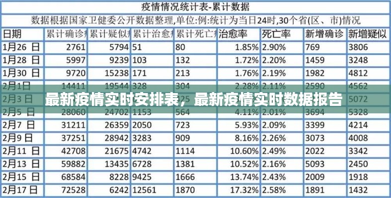随着全球疫情的持续发展,各国政府和卫生组织都在不断调整和更新疫情防控措施。为了帮助大家及时了解最新的疫情动态和防控安排,以下是一份最新的疫情实时安排表,供大家参考。