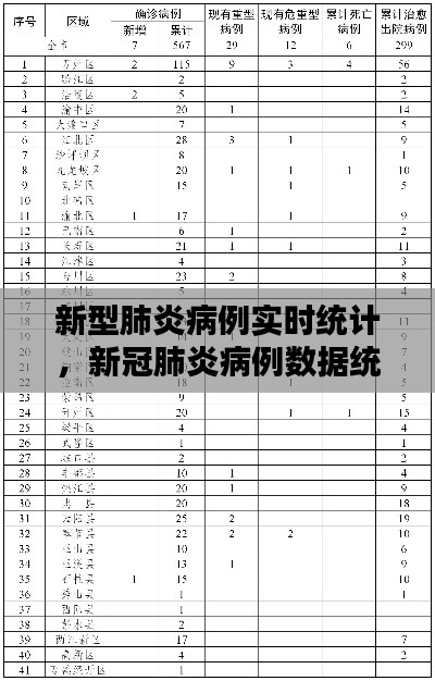 总之,新型肺炎病例的实时统计是了解疫情动态、制定防控策略的重要手段。让我们共同努力,共筑防线,战胜疫情,迎接美好的未来。