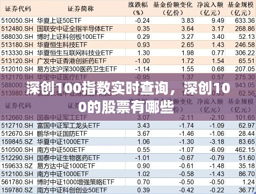 - 股票交易软件:大部分股票交易软件都提供了深创100指数的实时查询功能,投资者可以通过软件查看指数的实时走势、成分股信息、历史数据等。